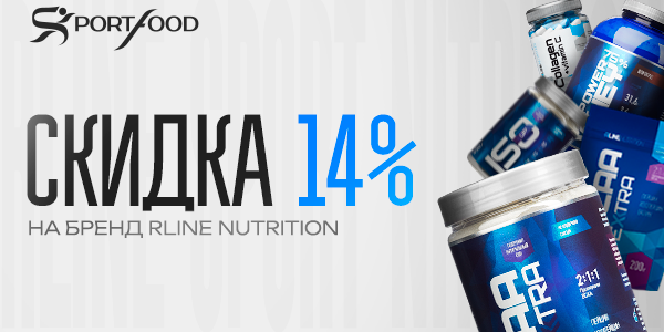Успейте приобрести выгодно товары бренда RLine Nutrition со скидкой на весь ассортимент продукции 14%.